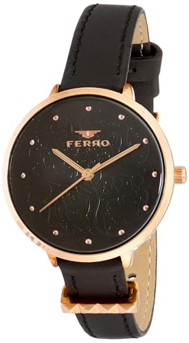 Ferro - ساعة بسوار جلدي للنساء مقاس 34 ملم، لون اسود، موديل F21087B-R