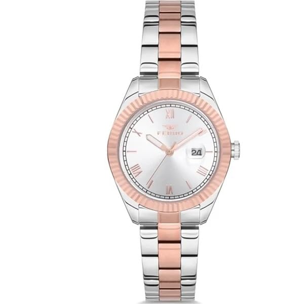 Ferro - ساعة ستانلس ستيل للنساء F21127A-E، مقاس 33 ملم، فضي/ذهبي وردي، تناظري