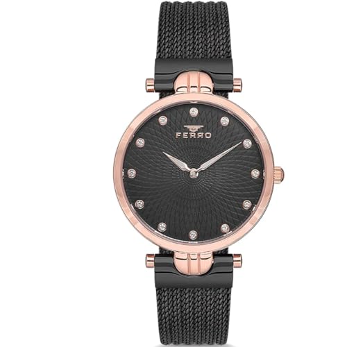Ferro - ساعة F21149C-R من الستانلس ستيل، مقاس 33 ملم، اسود/اسود، تناظري