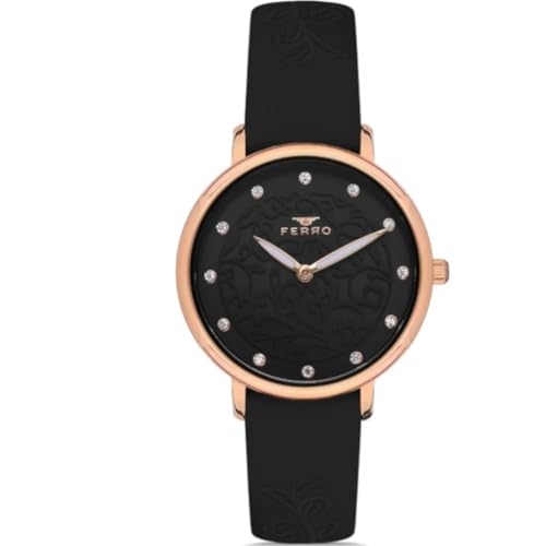 Ferro - ساعة يد بسوار جلدي للنساء F21202B-R مقاس 33 ملم، اسود
