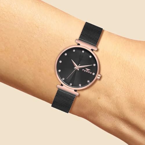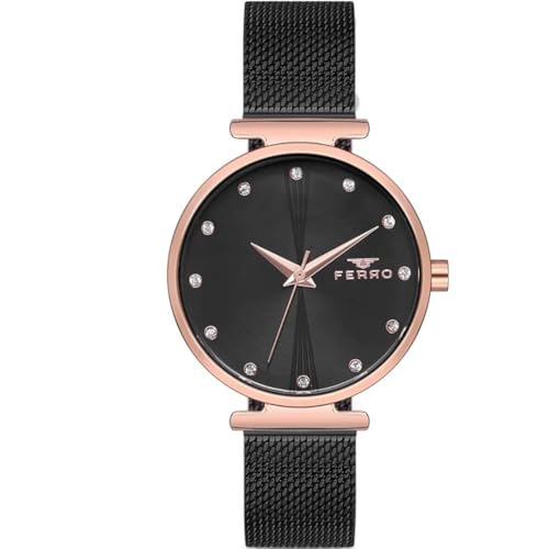Ferro - ساعة F2995C-1129-Q من الستانلس ستيل، مقاس 32 ملم، اسود/اسود، تناظري