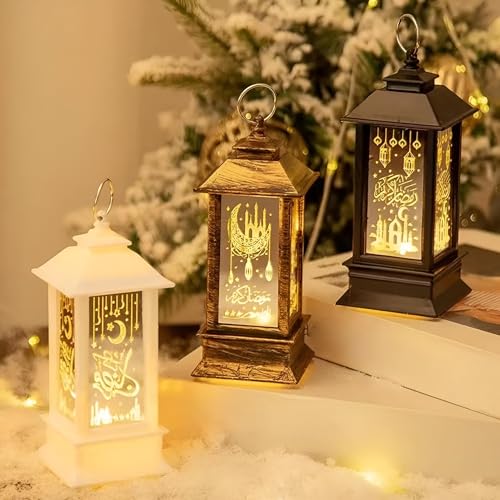 Generic - اكسسوارات احتفالية - فوانيس رمضان اسلامية مع اضاءة LED متعددة الالوان، تصميم فني، حوامل شموع كلاسيكية للاجواء الاحتفالية في المنزل والحديقة متعددة الالوان