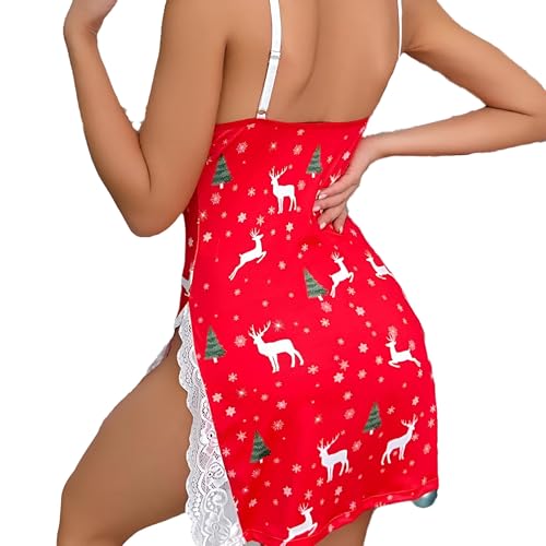Generic - ملابس احتفالية - لانجيري احمر مغري للكريسماس للعب الأدوار، مقاس مريح للعطلات واللقاءات الرومانسية، مثالي للحظات الخاصة في ليلة الكريسماس