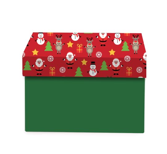 Generic - صندوق هدايا احتفالي للكريسماس، صندوق تخزين من الورق المقوى باللونين الاحمر والاخضر مع نمط عطلة مزخرف، مستطيل 24 × 24 × 18 سم مع غطاء قابل للطي