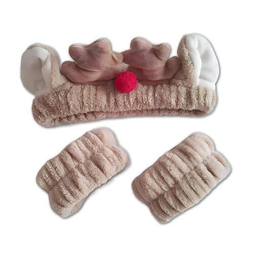 Generic - غطاء راس احتفالي - حيوان الرنة المخملي باللونين البني والابيض مع كرات بوم حمراء لاحتفالات الكريسماس (الخيار 1)