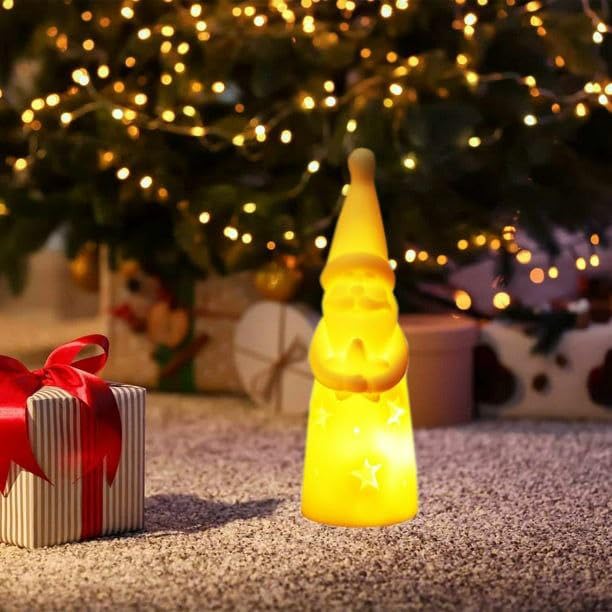 - تصميم احتفالي أنيق: أضف لمسة من سحر الكريسماس إلى مساحتك مع شمعة LED المصنوعة بشكل جميل والتي تتميز بقاعدة مملوءة بالحجر وتوهج ذهبي لامع. مثالية لخلق جو مريح واحتفالي في أي مكان في منزلك.