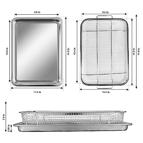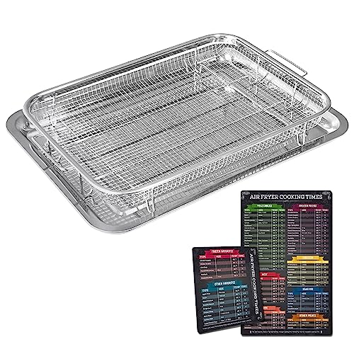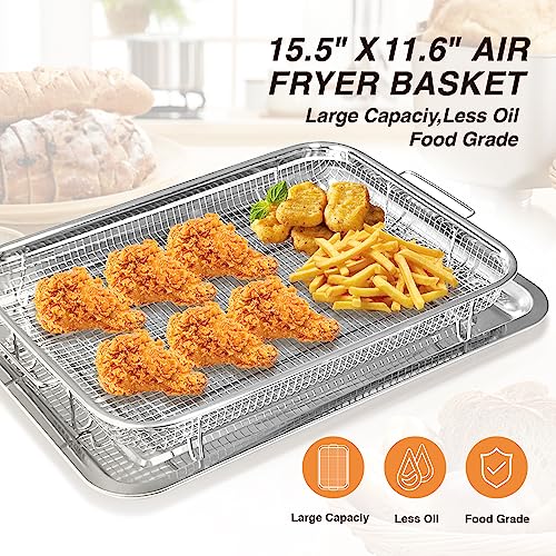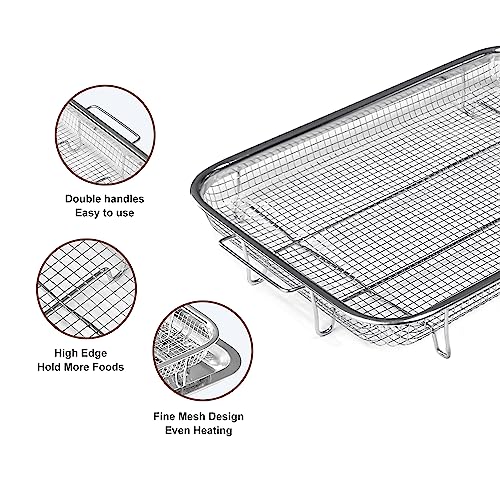 FESTZON - سلة فرن وصينية مقاس 40 × 30 سم للمقلاة الهوائية مقاومة للالتصاق بمقاس كبير جدا من الفولاذ المقاوم للصدأ من فيستزون، اكسسوارات مقلاة هوائية للفرن