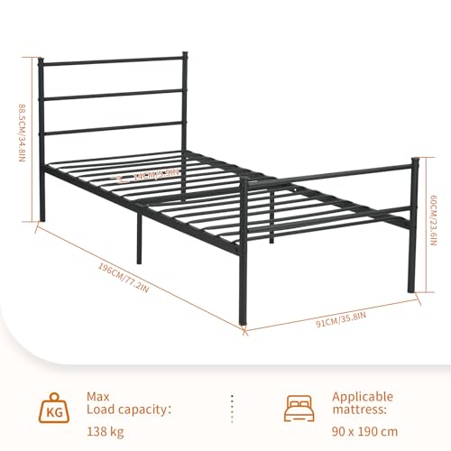 - ✅【سهل التجميع】 إطار السرير مقاس 90 × 1.9 م بجميع أجزائه، الأدوات والتعليمات متضمنة (استخدام اللغة العربية غير مؤكد). -