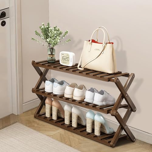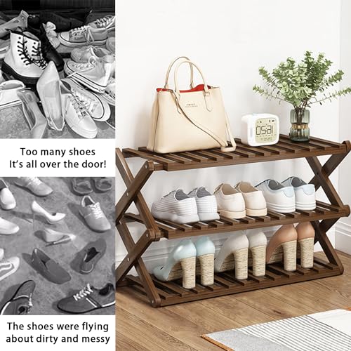 FEUFOAM - رف أحذية قابل للطي متعدد الطبقات من الخيزران بثلاثة مستويات منظم للتخزين قابل للوقوف الحر مناسب للمدخل الباب الممر وغرف النوم من فيوفوم