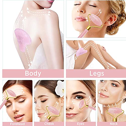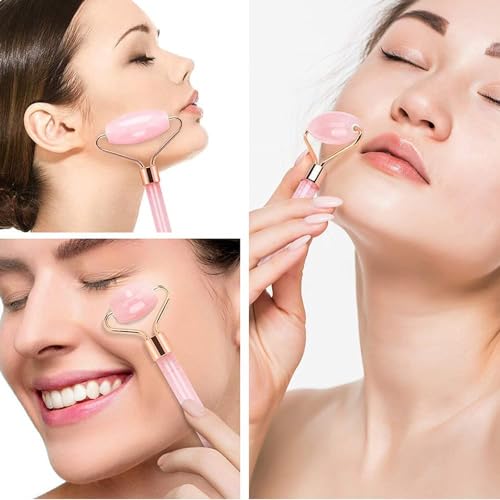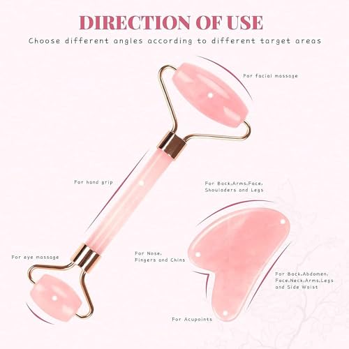 FEYRE - أداة تدليك الوجه من حجر اليشم، أداة جوا شا مصنوعة من حجر هيمالايا طبيعي للوجه والرقبة وشفاء تجاعيد البشرة ووضع السيروم (حجر وردي)