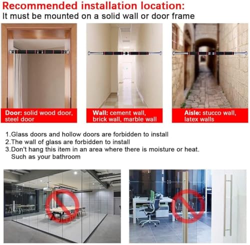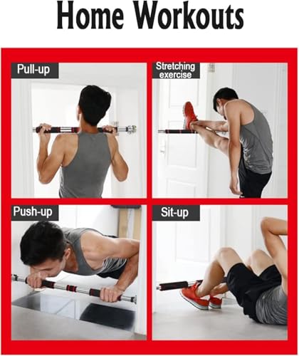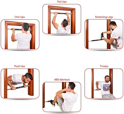 FFA SPORTS Fitness for all - قضيب أفقي لتمارين اللياقة البدنية والعقلة من اف اف ايه سبورتس قابل للتعديل (من 63 إلى 100 سم) من الفولاذ مزود بحاجز مطاطي وبرغي، من الفولاذ المقاوم للصدأ يثبت بإطار الباب وفي صالة الألعاب الرياضية