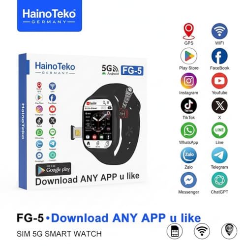 ساعة ذكية FG-5 بشريحة 5G، متوافقة مع جوجل بلاي، شاشة HD، كاميرا دوارة، واي فاي، نظام تحديد المواقع، دعم التطبيق، شحن مغناطيسي، اسود