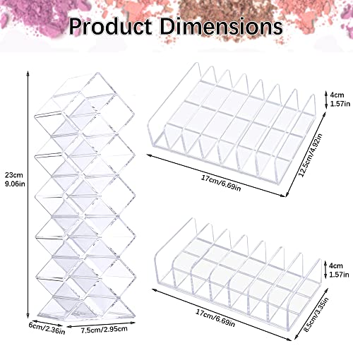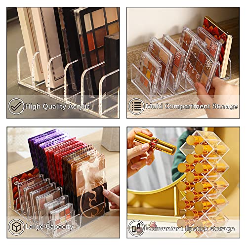 FHDUSRYO - منظم باليت ظلال الجفون من 3 قطع، منظم باليت مكياج مكون من 7 أقسام، 2 منظم باليت اكريليك مع 1 حامل أحمر شفاه، حامل تخزين باليت شفاف لمستحضرات التجميل وبودرة الخدود وطاولة الزينة في الحمام من FHDUSRYO