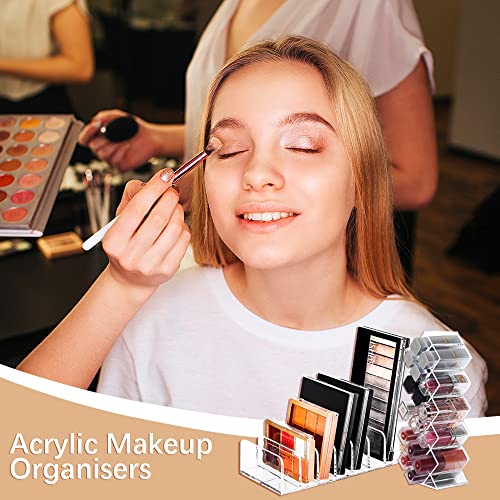 - 【سعة كبيرة】يحتوي كل منظم باليت اكريليك على 7 مساحات تخزين، بعرض 2 سم/0.79 انش ويمكنه حمل 1-2 لوحة ظلال العيون، سعة كبيرة بما يكفي لحمل معظم باليت المكياج. يسمح لك الترتيب الرأسي بالعثور على مستحضرات التجميل المرغوبة بسرعة وتوفير وقت العناية بالبشرة. يمكن لمنظم حامل أحمر الشفاه تخزين 16 أحمر شفاه، ويمكنك أيضًا استخدامه لحفظ أقلام الحواجب أو فرش المكياج.