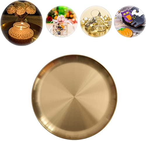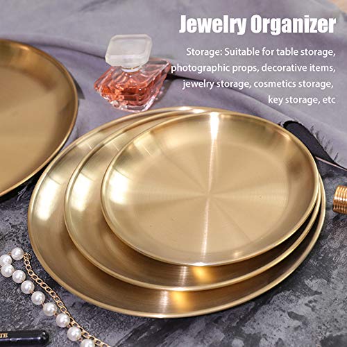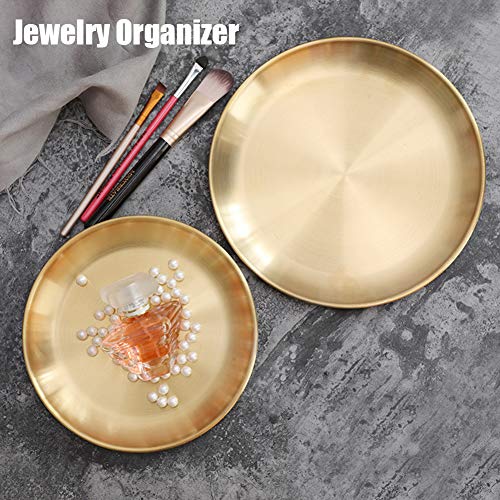 Fiacvrs - صينية ديكور للتخزين دائرية ذهبية من الفولاذ المقاوم للصدأ من فياكفرس، صينية تقديم عشاء كلاسيكية سهلة التنظيف تستخدم كديكور طاولة ومنظم مجوهرات وحاوية وطبق دائري (مقاس: 20 سم)