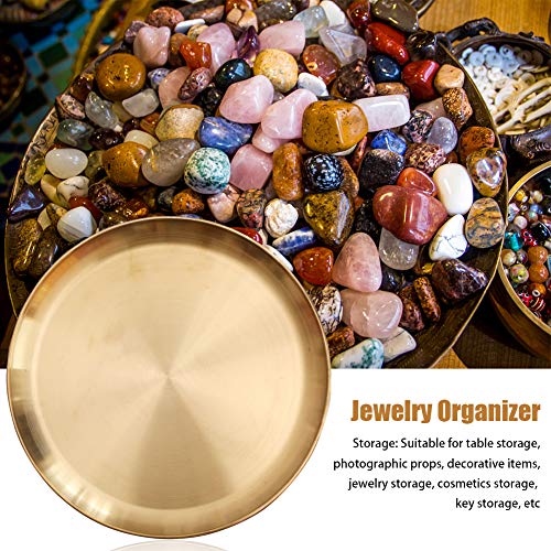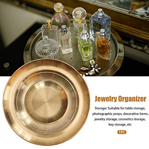 - المادة: صينية ذهبية مستديرة مصنوعة من الفولاذ المقاوم للصدأ، طبق تخزين وتنظيم المجوهرات مستحضرات التجميل، عملية ومتينة وتدوم طويلًا.