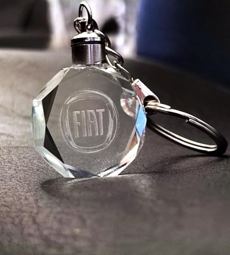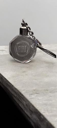 Generic - حلقة سلسلة مفاتيح زجاجية للسيارة بتصميم لوجو مضيء لسيارة فيات ثلاثي الأبعاد، زنك، كروم