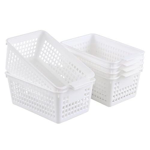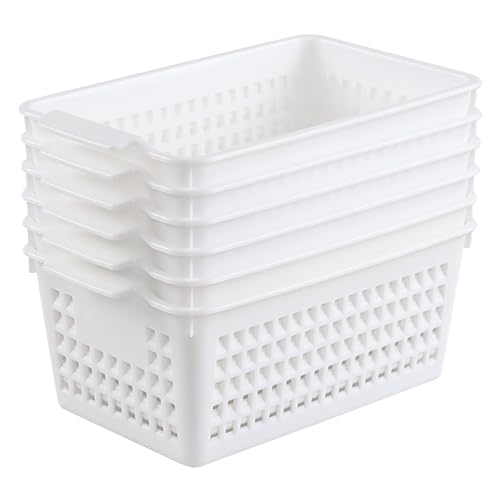 Fiazony - سلة تخزين بلاستيكية بيضاء من 6 قطع من فيازوني، سلة تخزين صغيرة