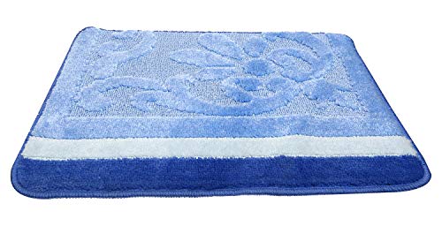 New - دعاسة أرضية الحمام الياف مجموعة من 3 - ازرق-ازرق غامق