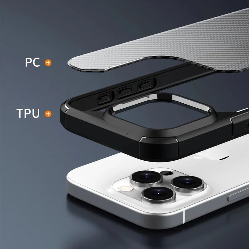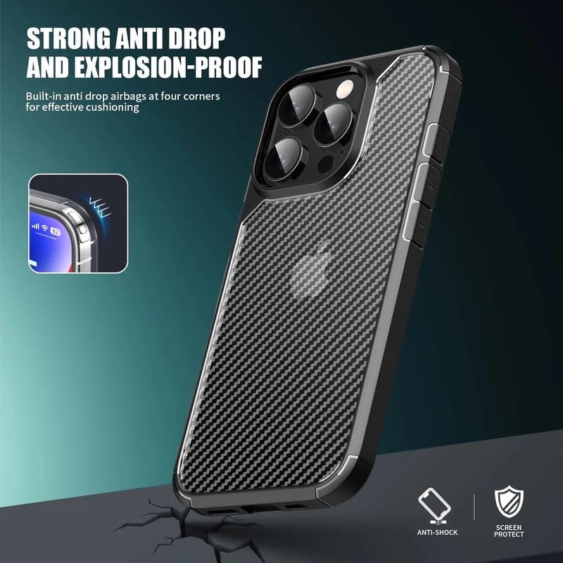 Generic - جراب فاخر من الياف الكربون مضاد للصدمات ومتين لموبايل ايفون 16 بولي كربونات صلب + سيليكون ناعم شفاف واقي نحيف برو ماكس