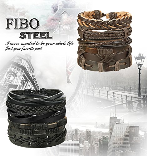 FIBO STEEL - سوار جلد منسوج من فيبو ستيل 12-17 قطعة للرجال والنساء قابل للتعديل ستانلس