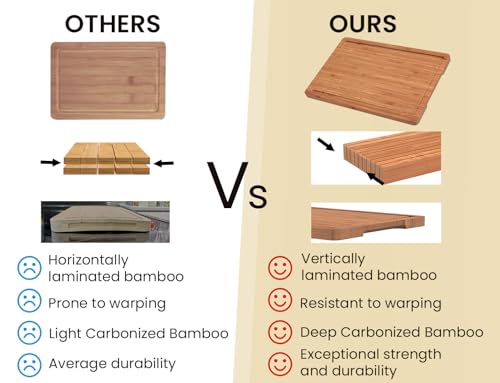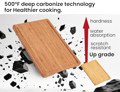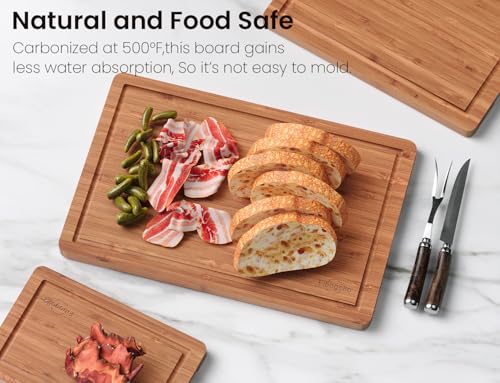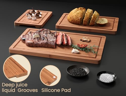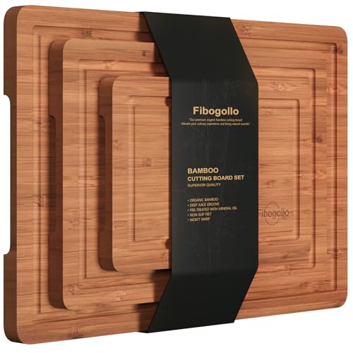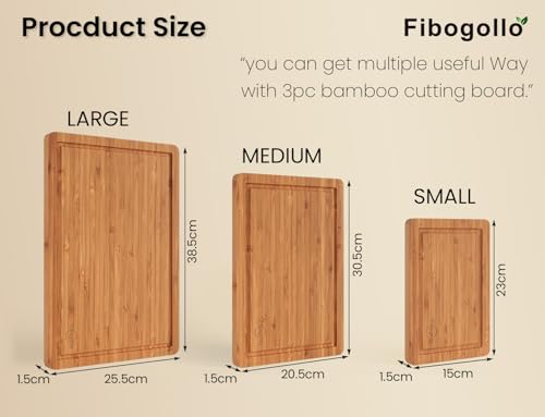 Fibogollo - الواح تقطيع من الخيزران من فيبوجولو، الواح تقطيع مع اخدود للعصير لاعداد وجبات المطبخ وتقديمها، 3 قطع