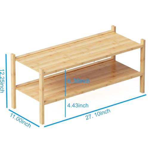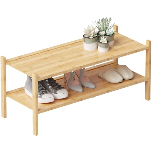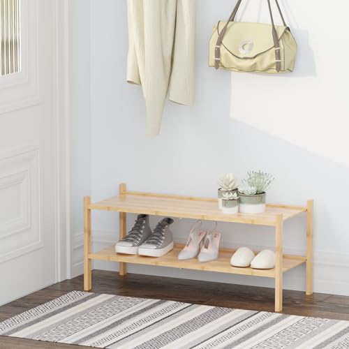 Fibogollo - رف أحذية من فيبوجولو خشب البامبو بطبقتين قابل للتكديس صغير للدولاب والمدخل والممر لون الخشب الطبيعي