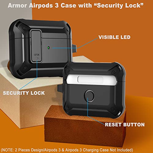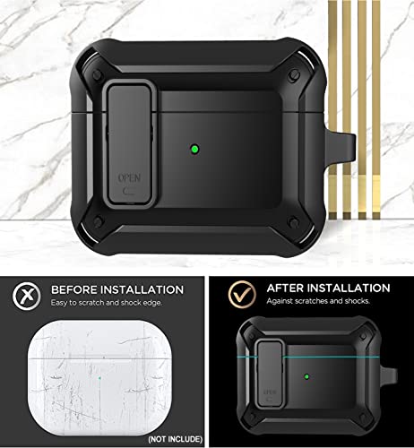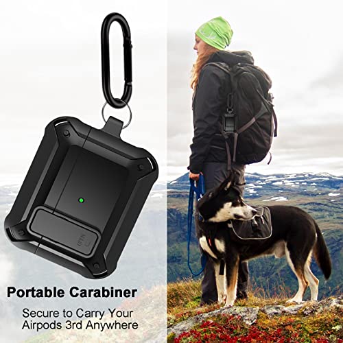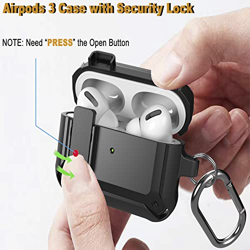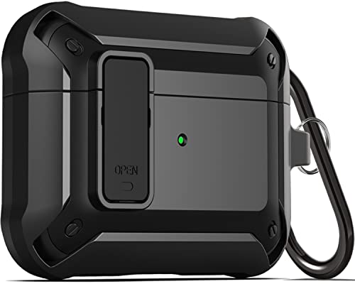 Wonjury - جراب حماية مطور بقفل امن قوي ومتين ولاسلكي ويحمي الهيكل بالكامل ومضاد للصدمات من فيبونتون للرجال لابل ايربودز الجيل الثالث اصدار 2021، لون اسود