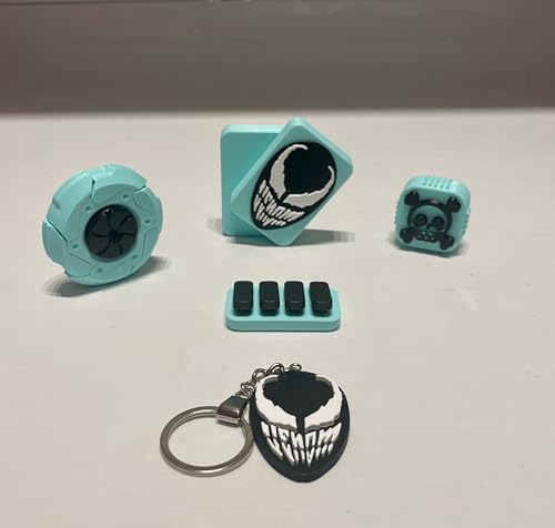 Generic - اكسسوارات فيدجيت سلايدرز قابلة للتجميع مع ميدالية مفاتيح، تركواز وأسود، مجموعة من 5 قطع