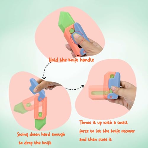 - لعبة فيدجيت سكينة الجاذبية المطبوعة ثلاثية الأبعاد: لعبة فيدجيت سكينة للبالغين والأطفال، ألعاب حسية يمكن اللعب بها باليد. تنزلق شفرة السكين بسهولة ويمكن سحبها بسلاسة، ومع صوت الطقطقة الذي يُحسّن المزاج، لا بد أن ذلك كان مثيرًا للإعجاب.