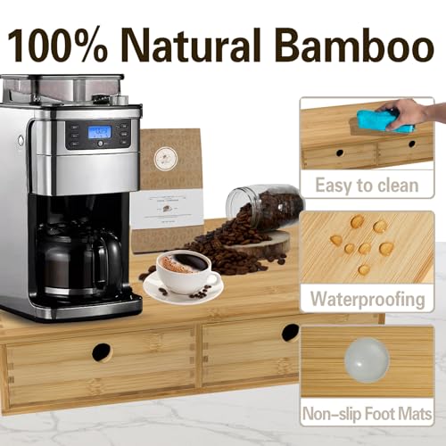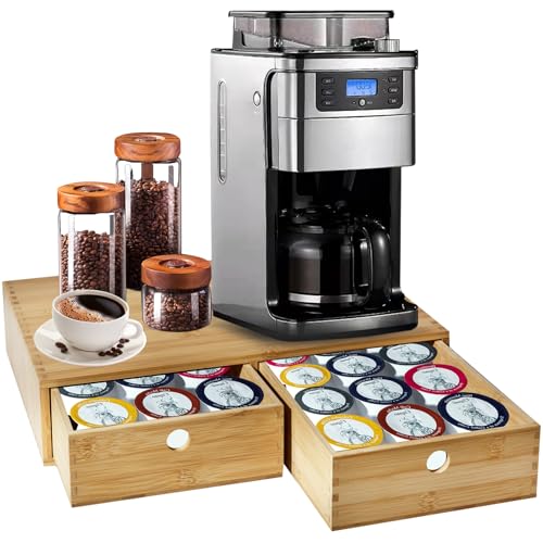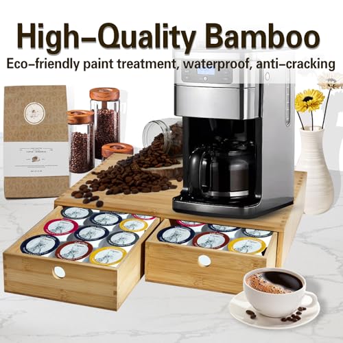 - 【مادة عالية الجودة】منظم كبسولات القهوة مصنوع من مادة خشب الخيزران عالية الجودة لتحمل وزن ماكينة تحضير القهوة. السطح مطلي بطلاء سبراي لحمايته من التشقق ومقاوم للماء ولا داعي للقلق بشأن الرطوبة، مما يجعل منظم تخزين كبسولات القهوة الخاص بنا يدوم لفترة أطول.