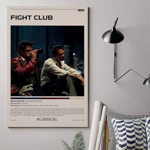 Possbas - بوستر كلاسيكي لفيلم Fight Club، غلاف فيلم قديم وبوسترات موسيقية لجمالية الغرفة، مطبوع على قماش كديكور جداري لغرف النوم، 30 × 45 سم