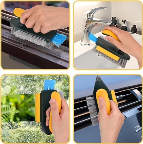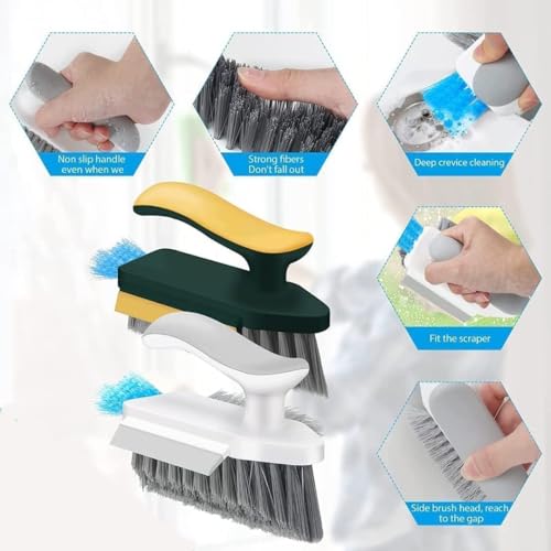 FIGMENT - فرشاة تنظيف جص البلاط 4 في 1 مع ممسحة، فرش تنظيف الحمام وتنظيف الفجوات على شكل V، أدوات فرشاة تنظيف الشقوق والأرضيات متعددة الوظائف من فيجمنت (أصفر وأخضر)
