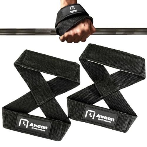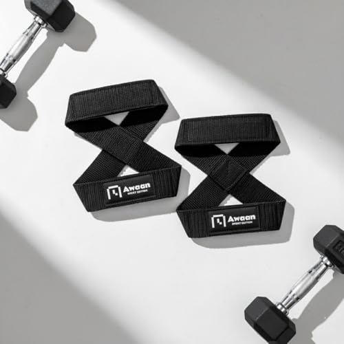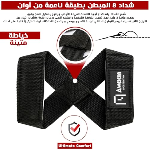 Awaan - شداد جيم على شكل 8 مبطن بطبقة ناعمة، يوفر راحة وثباتًا أفضل، أحزمة رفع الأثقال تدعم القبضة أثناء تمارين الحديد والقوة من اوان، عبوة من قطعتين