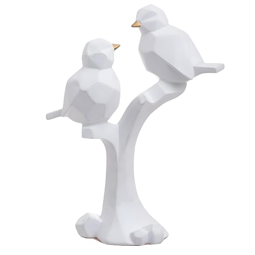 Generic - تمثال - تمثال طائر مزدوج باللونين الأبيض والذهبي يجلب الجمال الفني وسحر الديكور الأنيق ولمسة رشيقة لمكاتب المكتب ومناطق المعيشة المنزلية والديكورات الداخلية المعاصرة