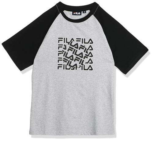 Fila - تيشرت بأكمام قصيرة ورقبة دائرية ضيقة وأكمام متباينة للأطفال من الجنسين من فيلا