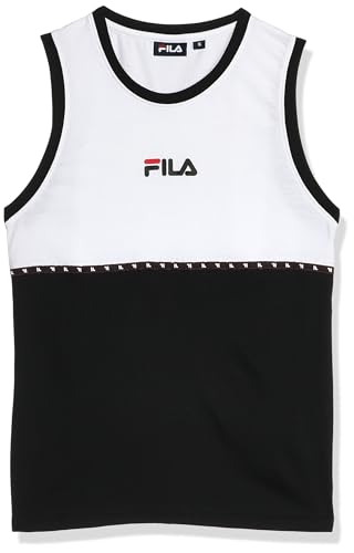 Fila - تيشرت تانك بدون أكمام بألوان متباينة مع شريط شعار مزدوج للأطفال للجنسين من فيلا