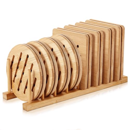 FillTouch - قواعد للأواني الساخنة من خيزران مقاومة للحرارة مع رف لحمل الأطباق، قواعد 15 سم غير قابلة للانزلاق، رف تخزين للأطباق الساخنة والأوعية وبراد الشاي، حامل أواني المطبخ من فيل تاتش، 16 قطعة