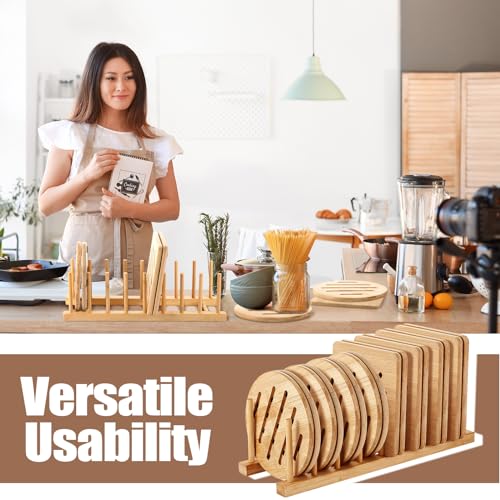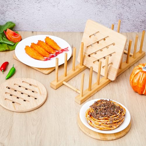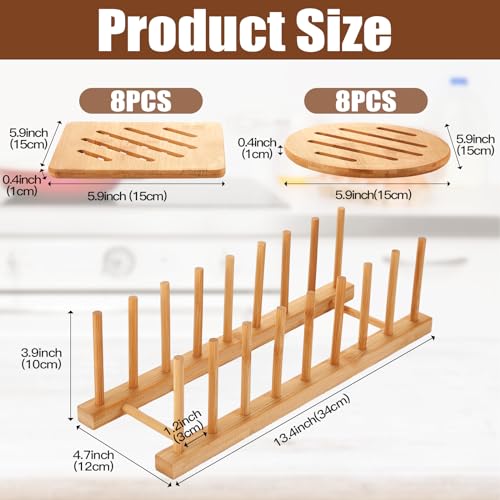 - مصممة بعين الاعتبار: جرب المزيج بين الأناقة والعملية مع حوامل الخيزران الخاصة بنا مع رف الأطباق؛ يبلغ حجم هذه الركائز حوالي 5.9 انش مربع أو دائري، مما يوفر مساحة واسعة للأطباق والمقالي الساخنة؛ يمكن لرف الأطباق المتضمن الذي يبلغ مقاسه حوالي 13.6 × 4.7 × 3.9 انش تخزين 16 ركيزة بشكل مريح، مما يجعل مطبخك يبدو منظمًا ومتقلبًا. ترد