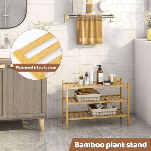 - ✅【مادة الخيزران المفضلة، قوية ومتينة】شرائح الخيزران عالية الجودة يمكنها حمل ما يصل إلى 45 باوند. موزعة بالتساوي على كل طبقة. تتميز بقدرة تحمل قوية ومتانة ومتانة فائقة. يمكنك أيضًا استخدامه كحامل زهور لوضع النباتات القوية. مناسبة جدًا لحديقتك أو التخزين الداخلي.