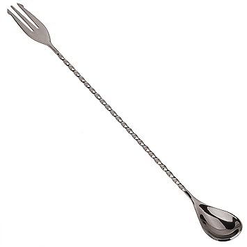 FINALITY - معلقة وشوكة بتصميم ملتوي من الفولاذ المقاوم للصدأ من فينالتي، معلقة خلط الكوكتيلات، معلقة تقليب بمقبض طويل، مقاس 30 سم، عبوة من قطعة واحدة