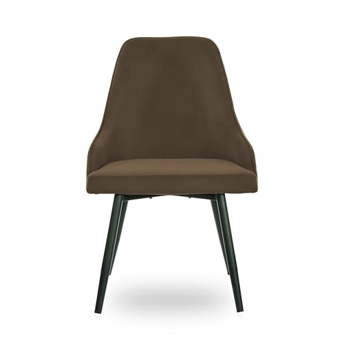 Finch Fox - كرسي طعام فريد من القطيفة لغرفة المعيشة وغرفة النوم والمكتب المنزلي مع أرجل معدنية سوداء من فينش فوكس®، لون بني غامق