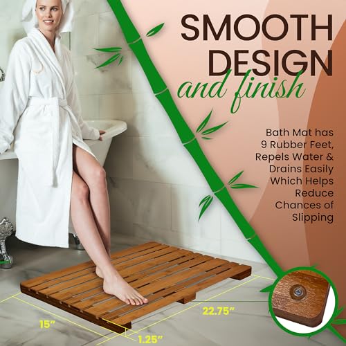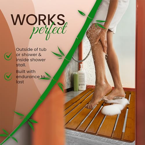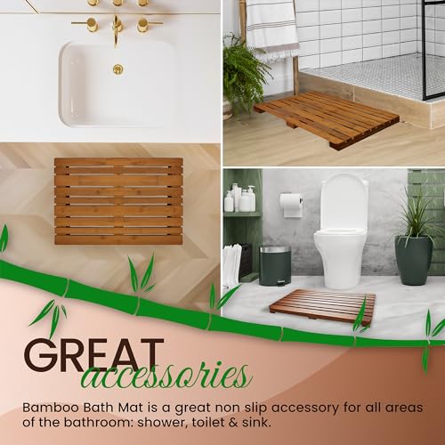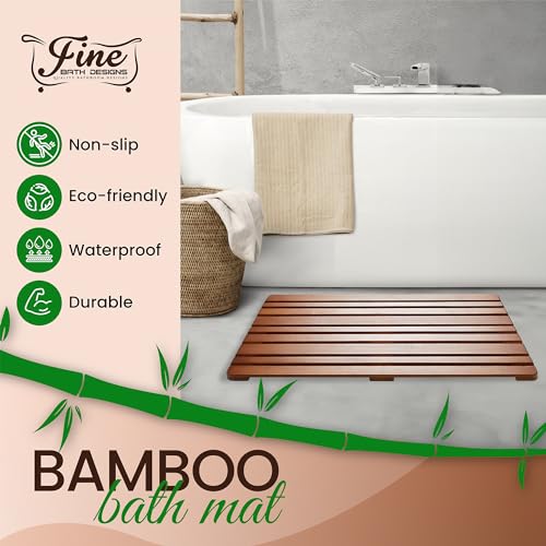 Fine Bath Designs - دواسة حمام من الخيزران، دواسة حمام مضادة للانزلاق، دواسة من الخيزران للحمام والسبا، دواسة حمام خيزران خشبية، مقاس (38 × 58 سم)