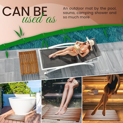 - ⭐ [دواسة حمام من الخيزران] - تعمل بشكل مثالي داخل مقصورة الدش وأي منطقة أخرى في الحمام. يمكن استخدام دواسة الحمام المصنوعة من الخيزران هذه أيضًا كسجادة خارجية لحمام السباحة والساونا ودش التخييم وأكثر من ذلك بكثير