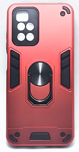 Generic - جراب حماية خلفي مع حامل اصبع لموبايل شاومي ريدمي 10. احمر، معدن