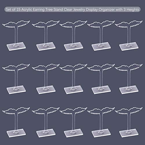 - [حامل عرض الأقراط من الأكريليك]: 15 قطعة من حوامل عرض الأقراط الشفافة. علّقي أقراطك وحافظ عليها منظمة بسهولة، ومناسبة لمختلف الأقراط.