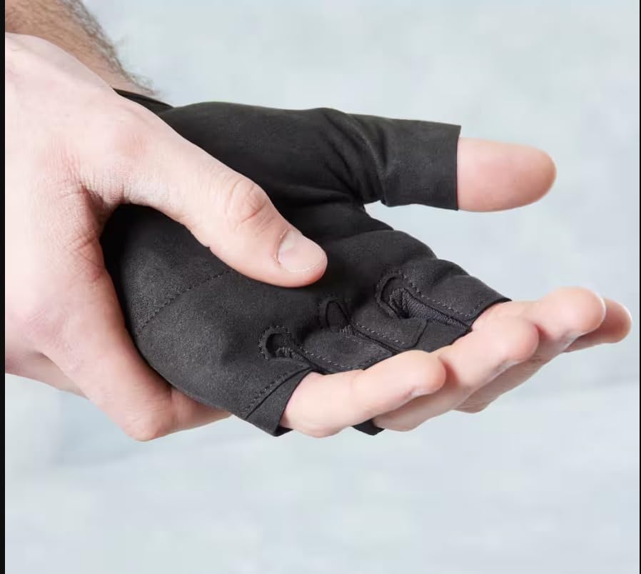 - التصميم: قفازات تمرين بدون أصابع تتميز بتصميم نصف إصبع مع هيكل أسود متين للحصول على أقصى قدر من المرونة والقبضة أثناء التمرين