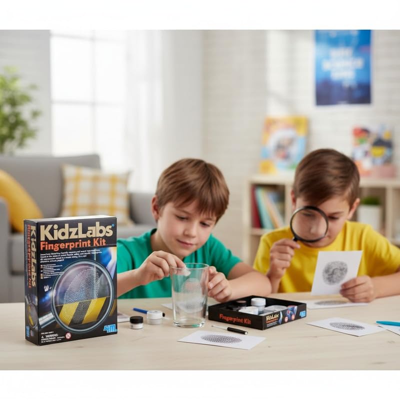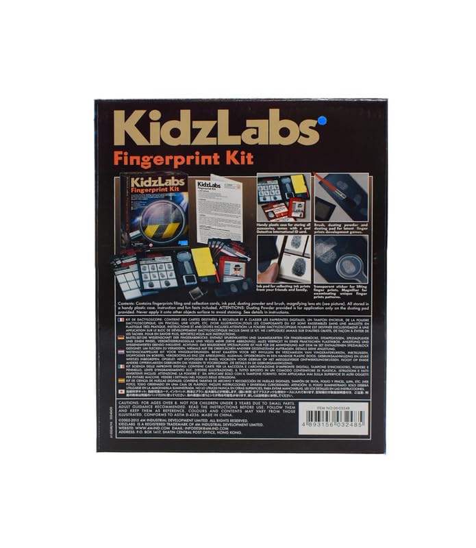 - تأتي مع وسادة حبر ومسحوق غبار وفرشاة ومكبر وبطاقات ملف.
