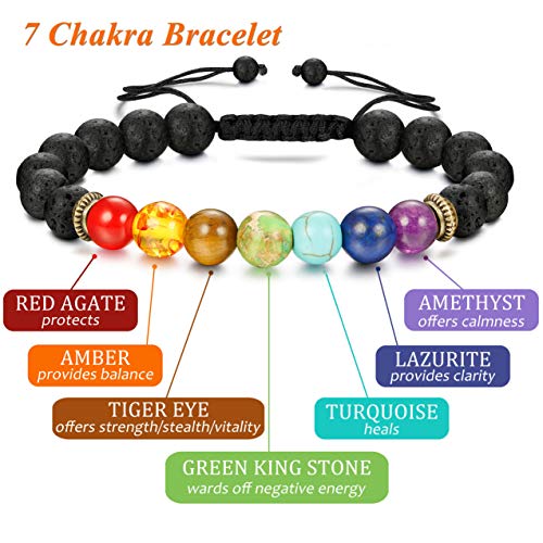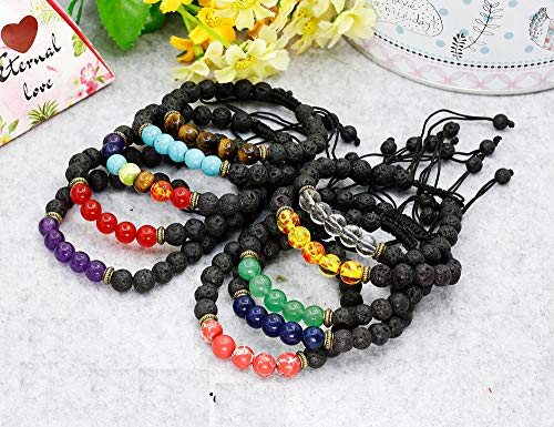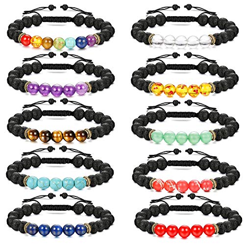 Finrezio - اساور للعلاج العطري واليوجا من احجار الشاكرات السبعة لتوزيع الزيوت العطرية للنساء والرجال فينريزيو خرز 8 ملم - 10 قطع حجر
