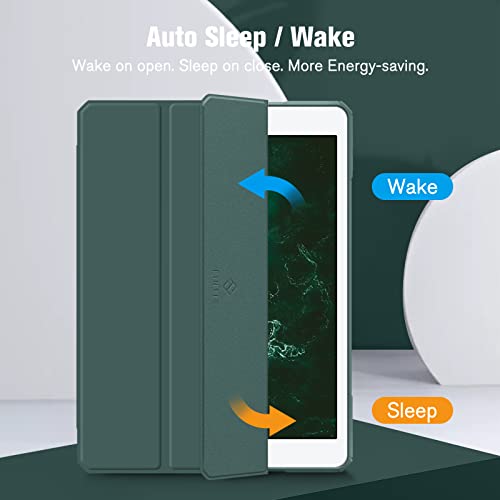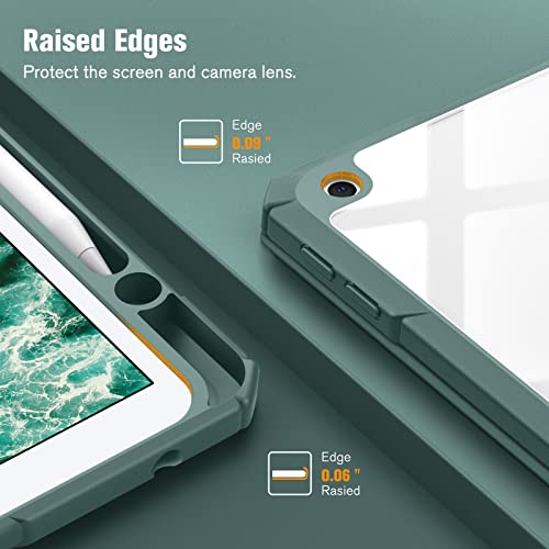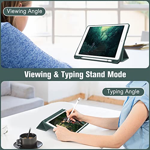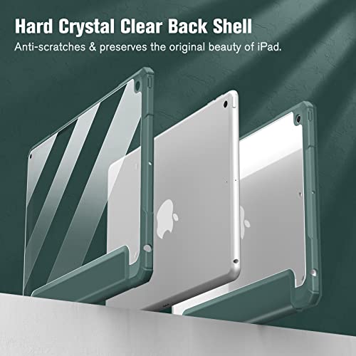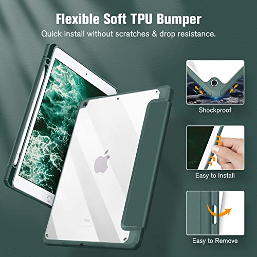 FINTIE - جراب نحيف مقاوم للصدمات بظهر شفاف لايباد الجيل 9/8/7 (اصدار 2021/2020/2019) بحجم 10.2 بوصة، مع حامل قلم مدمج وخاصية النوم والاستيقاظ التلقائي من فينتي (اخضر داكن)، بولي كربونات، لتابلت